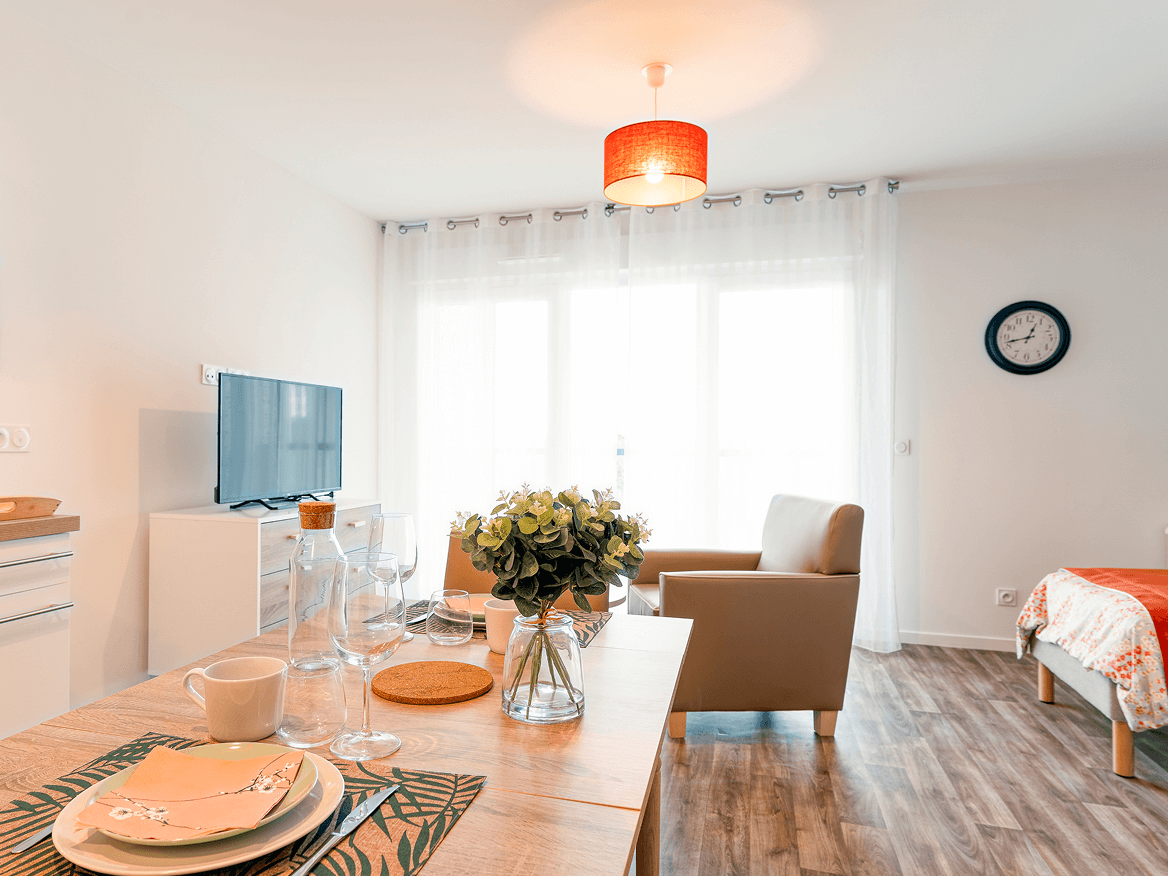 Installez-vous dans un appartement clair, fonctionnel et bien aménagé, pensé pour votre confort quotidien. La résidence offre des espaces de vie pour se retrouver et une équipe disponible 7j/7. Vivez la magie des fêtes entouré(e), apaisé(e), tout en gardant votre intimité.
